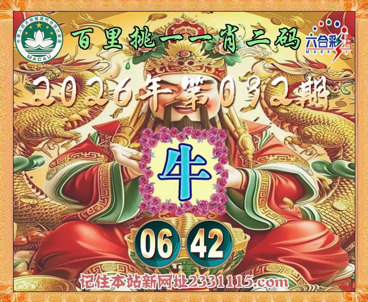092期:《百里挑一》 💎一肖二码💎【牛】【06.42】开:牛06准