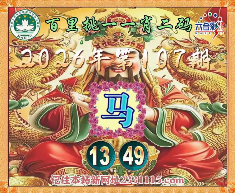 107期:《百里挑一》 💎一肖二码💎【马】【13.49】开:马49准