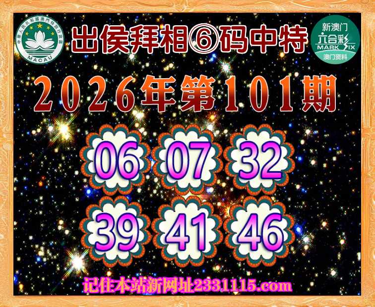 101期:《出侯拜相》 🍔⑥码中特🍔【06.07.32.39.41.46】开:39准