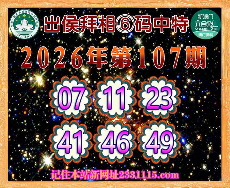 107期:《出侯拜相》 🍔⑥码中特🍔【07.11.23.41.46.49】开:49准