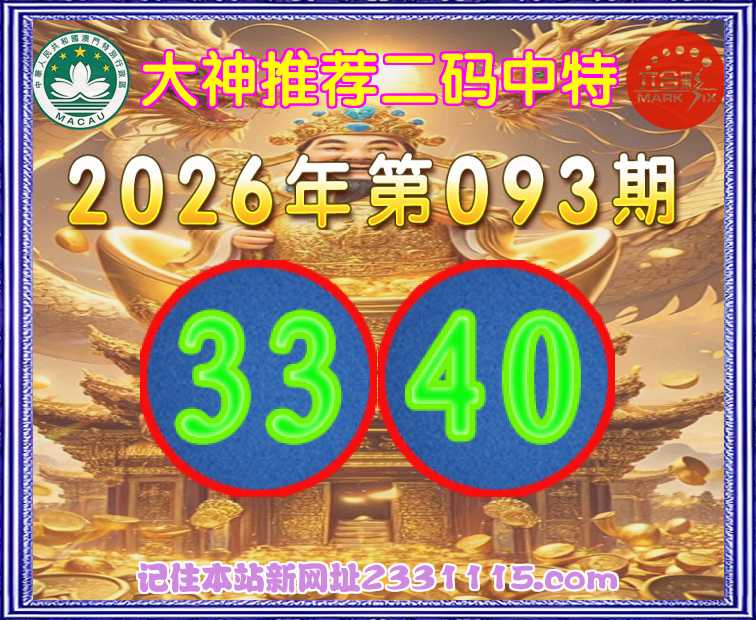 093期: 🍃『大神推荐』 🍃二码中特🍃【33.40】开:40准