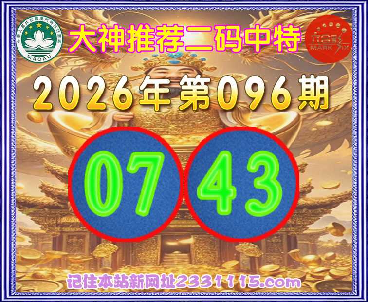 096期: 🍃『大神推荐』 🍃二码中特🍃【07.43】开:43准