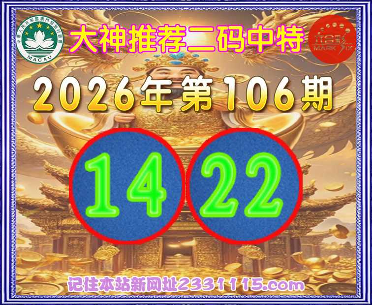 106期: 🍃『大神推荐』 🍃二码中特🍃【14.22】开:22准