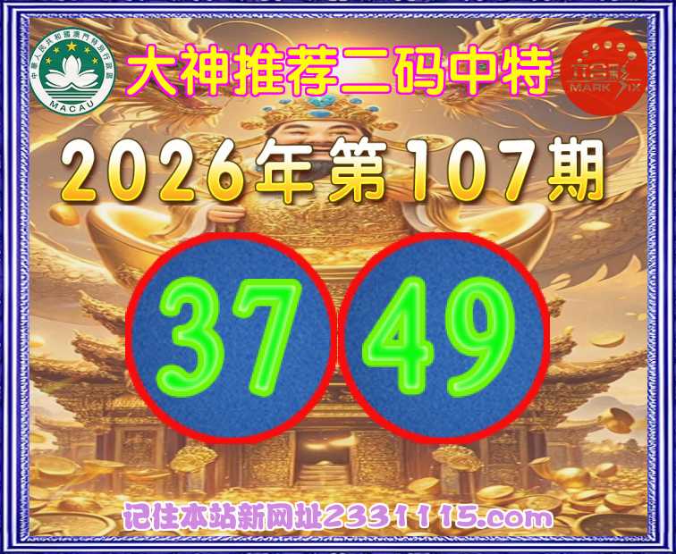 107期: 🍃『大神推荐』 🍃二码中特🍃【37.49】开:49准