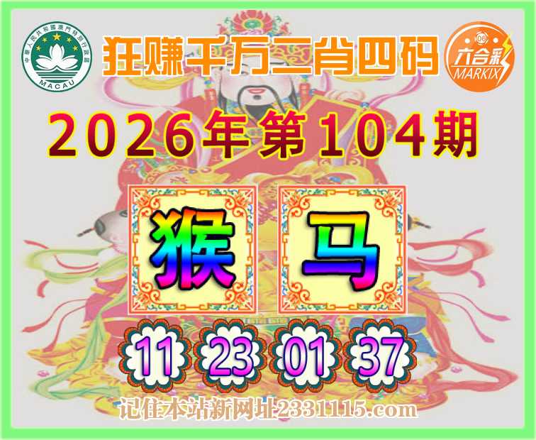 104期:『狂赚千万』 🧦二肖四码🧦【猴马】【11.23.01.37】开:马01准