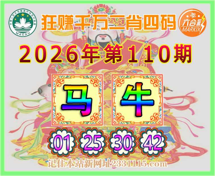 110期:『狂赚千万』 🧦二肖四码🧦【马牛】【01.25.30.42】开:牛30准