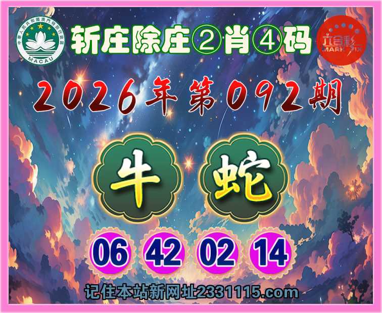 092期:『斩庄除庄』 🐓②肖④码🐓【牛蛇】【06.42.02.14】开:牛06准