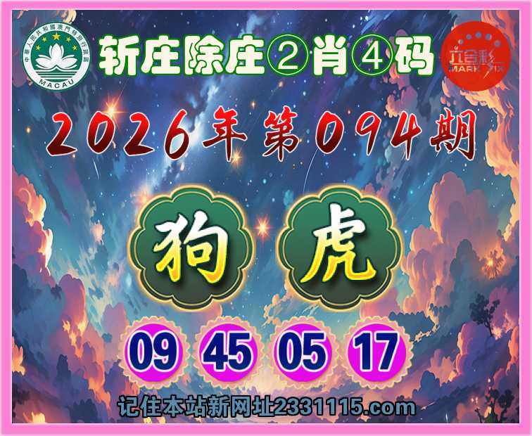 094期:『斩庄除庄』 🐓②肖④码🐓【狗虎】【09.45.05.17】开:虎17准