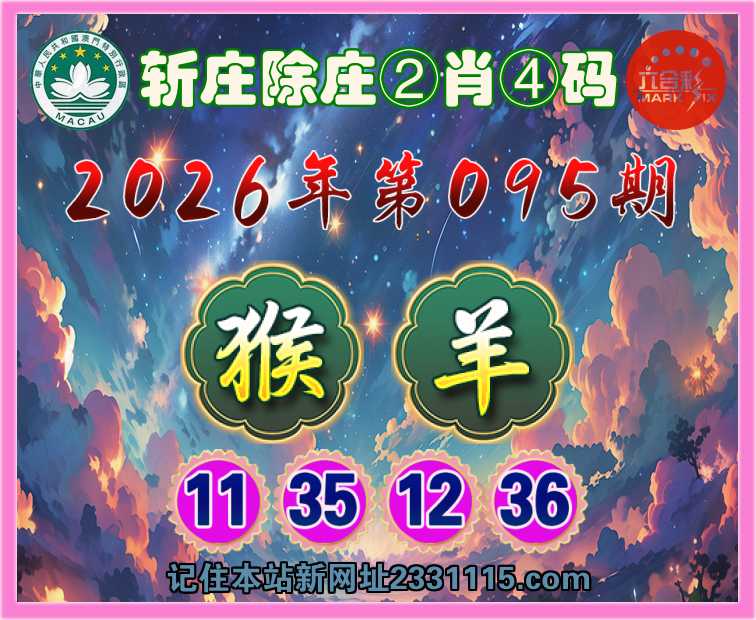 095期:『斩庄除庄』 🐓②肖④码🐓【猴羊】【11.35.12.36】开:猴35准