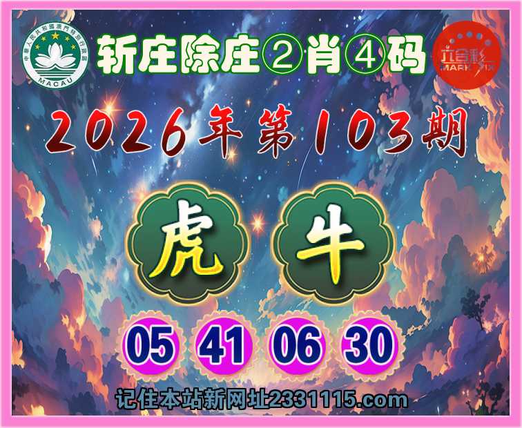 103期:『斩庄除庄』 🐓②肖④码🐓【虎牛】【05.41.06.30】开:牛06准