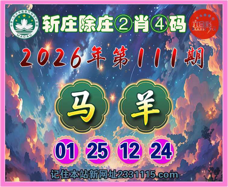 111期:『斩庄除庄』 🐓②肖④码🐓【马羊】【01.25.12.24】开:马01准