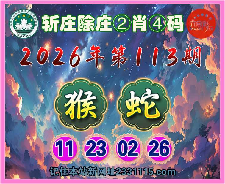 113期:『斩庄除庄』 🐓②肖④码🐓【猴蛇】【11.23.02.26】开:蛇02准